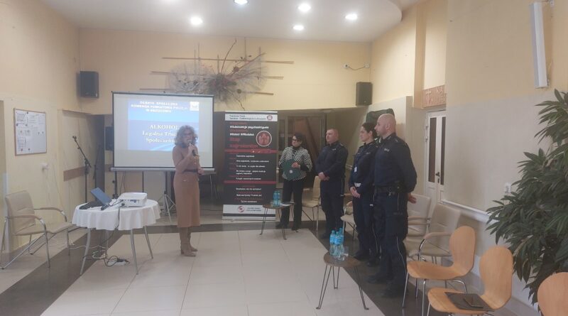 W piątkowej debacie pn. „Alkohol – legalna trucizna społeczeństwa” zorganizowanej z mieszkańcami w Domu Pomocy Społecznej w Brzozowie udział wziął I Zastępca Komendanta Powiatowego Policji w Brzozowie, nadkom. Bartłomiej Świerczek, naczelnik Wydziału Ruchu Drogowego, podkom. Monika Dereń, dzielnicowy Brzozowa, mł. asp. Robert Kustra, p.o. oficer prasowy Komendanta Powiatowego Policji w Brzozowie, st. asp. Joanna Baranowska, Dyrektor Powiatowej Stacji Sanitarno – Epidemiologicznej w Brzozowie, Zofia Cwynar, Dyrektor Domu Pomocy Społecznej w Brzozowie, Lidia Cyparska oraz mieszkańcy.