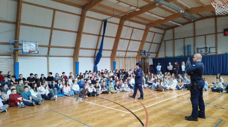 Policjanci przypominali młodym narciarzom i snowboardzistom o obowiązku używania kasków oraz o bezwzględnym zakazie korzystania z tzw. “dzikich lodowisk”. Z uczniami omówione zostały również zagrożenia, z jakimi mogą spotkać się dzieci spędzające czas wolny w domu.