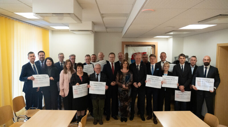 W Urzędzie Marszałkowskim Województwa Podkarpackiego odbyło się spotkanie dotyczące podpisania umów z ostatecznymi odbiorcami wsparcia w ramach inwestycji B3.1.1 „Inwestycje w zrównoważoną gospodarkę wodno-ściekową na terenach wiejskich” Krajowego Planu Odbudowy i Zwiększania Odporności. Samorząd Województwa Podkarpackiego pełni w tym procesie rolę jednostki wspierającej – odpowiada m.in. za ogłaszanie naborów i przyznawanie pomocy. W wydarzeniu uczestniczyli wicemarszałkowie Piotr Pilch oraz Karol Ożóg.