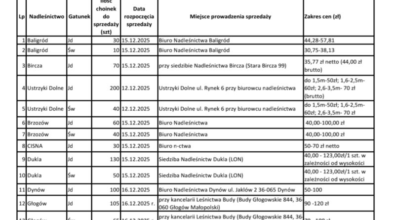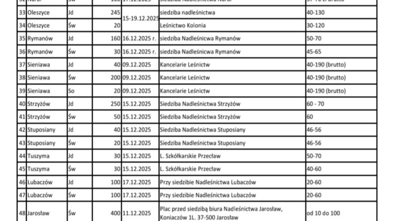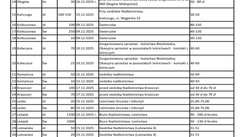 (Terminy rozpoczęcia sprzedaży w poszczególnych nadleśnictwach w tabeli poniżej)