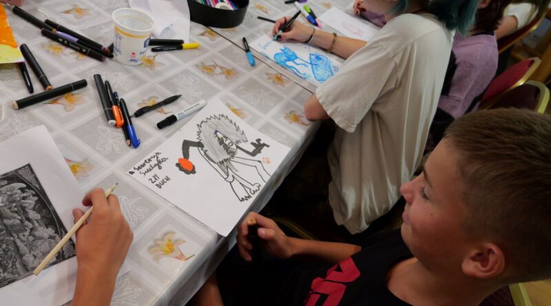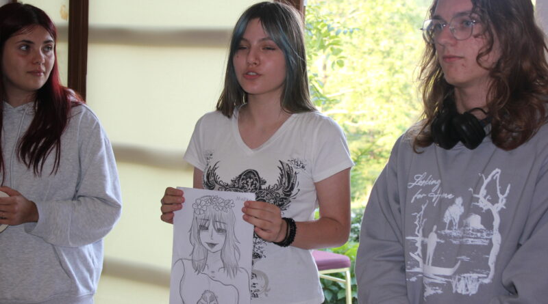 W sierpniu 40-osobowa grupa starszej młodzieży szkolnej z Polski i Ukrainy miała okazję wspólnie uczestniczyć w działaniach projektowych pod nazwą “Odkrywamy skarby sztuki ludowej”. Bazą spotkania był ośrodek Chyrowa Ski w gminie Dukla. Program 10-dniowych zajęć był bardzo bogaty i obfitował w szereg atrakcji tworzonych przez uczestników i dla uczestników. Oprócz warsztatów artystycznych były to wizyty studyjne do Gorlic i Jasła, wieczory, w czasie których uczestnicy zapoznawali się z kulturą obu narodów, w tym muzyką, tańcem czy kulinariami, i odnajdywali w niej wspólne wątki. Szczególnie inspirujące były zajęcia literacko-plastyczne, podczas których uczestnicy rysowali wyobrażenia, a następnie prezentowali występujące w słowiańskich wierzeniach ludowych fantastyczne, nierzadko groźne stwory. Wśród nich znalazły się takie postaci jak: mawka, ubożę, dziewanna, żar-ptak czy wodnik. – Dziewanna to boginka młodości, wolności, lasu, przyrody. Dziewanna symbolizuje niezależność i dlatego ją właśnie wybrałam, bo niezależność jest dla mnie najważniejsza – mówi Margaryta z Ukrainy.