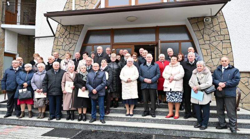 Wójt pogratulowała pięknego jubileuszu obecnym na uroczystości – Pół wieku lub sześćdziesiąt lat budowaliście Państwo swoje związki, które są dziś dla nas wszystkich symbolem trwałości, wzajemnego zrozumienia i ogromnego poświęcenia. Wasza wspólna droga to piękna, długa opowieść, pisana radościami i wyzwaniami, pełna ciepła i serdeczności, która promieniuje na całe otoczenie.