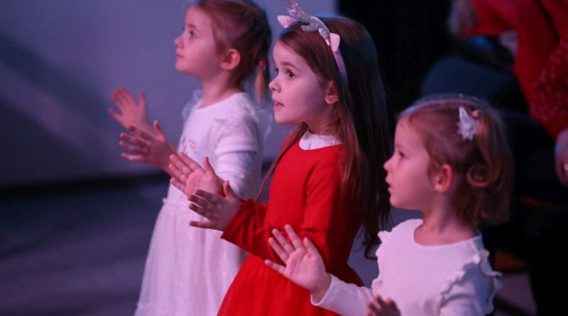 Maluchy z zainteresowaniem obserwowały scenę, a ich radość i emocje rosły z każdą chwilą, gdy zbliżał się moment wręczania prezentów.