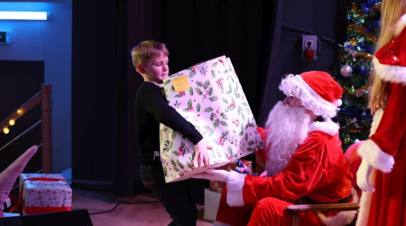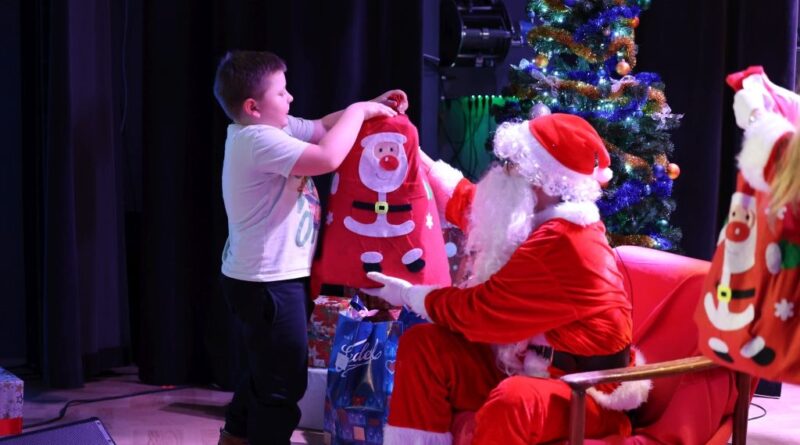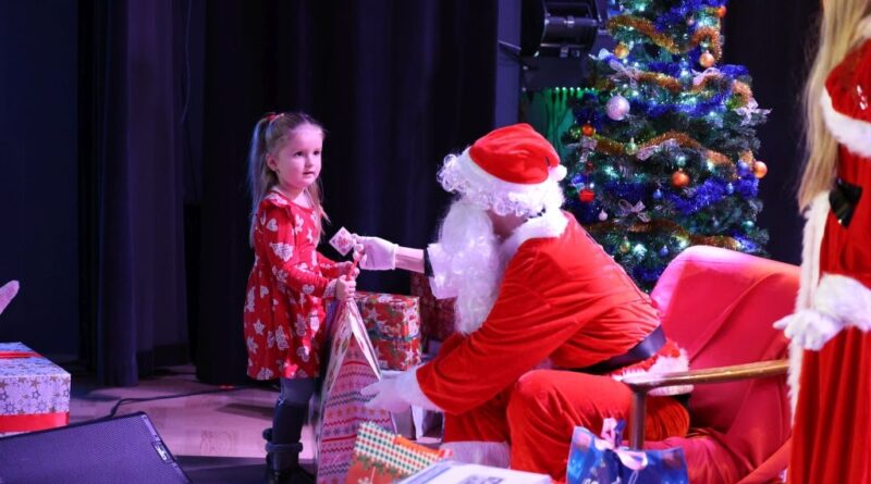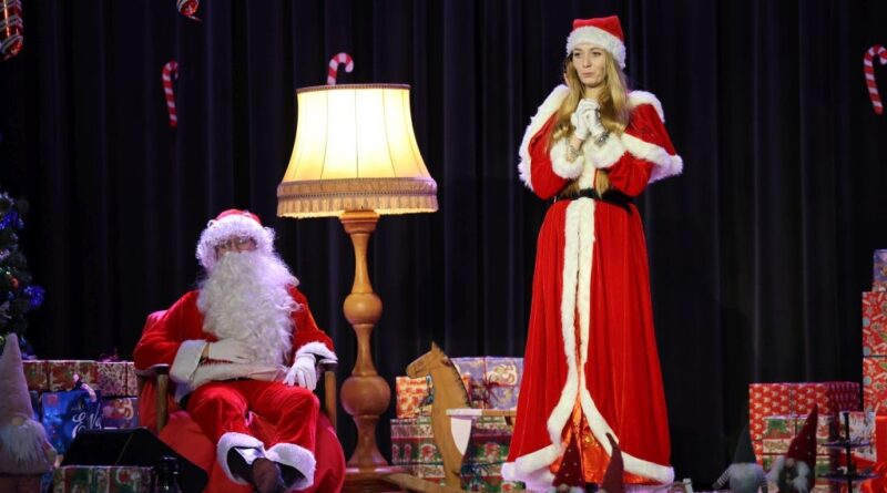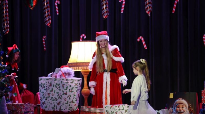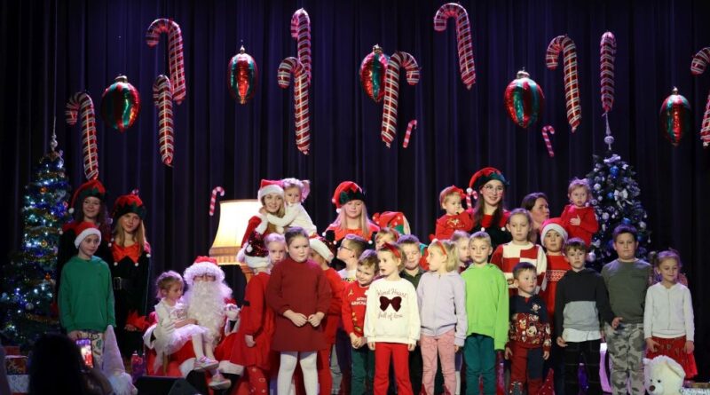 Na pięknie udekorowanej scenie pojawił się nie tylko sam Mikołaj, ale także pani Mikołajowa wraz z pomocnymi elfami, które z uśmiechem pomagały w rozdawaniu prezentów.