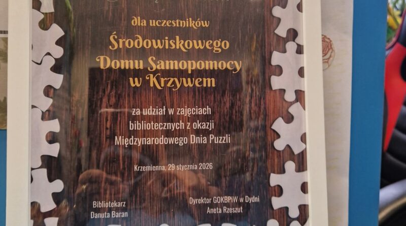 Z okazji Międzynarodowego Dnia Puzzli uczestnicy Środowiskowego Domu Samopomocy w Krzywem odwiedzili bibliotekę–świetlicę w Krzemiennej. Spotkanie upłynęło w wyjątkowo miłej i twórczej atmosferze, a jego głównym motywem było wspólne układanie puzzli.