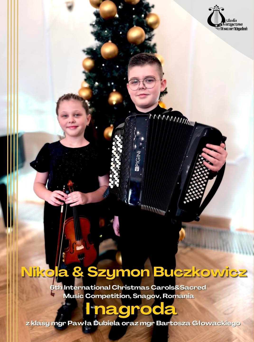 Nikola i Szymon Buczkowicz odnieśli znaczący sukces na arenie międzynarodowej. Duet zdobył I nagrodę podczas 6th International Christmas Carols & Sacred Music Competition, który odbył się w Snagov w Rumunii.