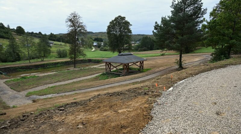 Trwają prace ziemne przygotowawcze, których efektem będą alejki spacerowe, utwardzony plac i poszerzenie odcinka drogi wewnętrznej. Wykonane zostaną nasadzenia roślinami ozdobnymi i drzewami parkowymi, powstanie ścieżka sensoryczna. Nowe miejsca rekreacji zostaną wyposażone w elementy małej architektury.