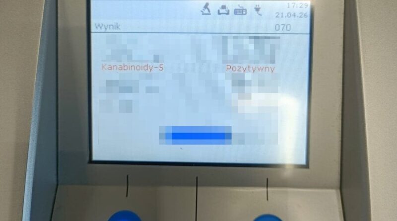 Następnie podczas kontroli, policjanci ujawnili przy 32-latku niewielką ilości marihuany. Badanie narkotesterem potwierdziło również, że mężczyzna był pod jej wpływem, dlatego została mu pobrana krew do badań.