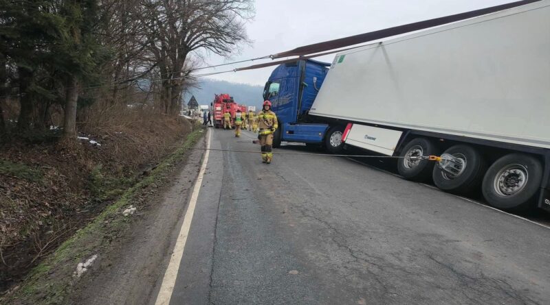 Niewistka: Ciężarówka wpadła do rowu. Ponad pięć godzin utrudnień na drodze