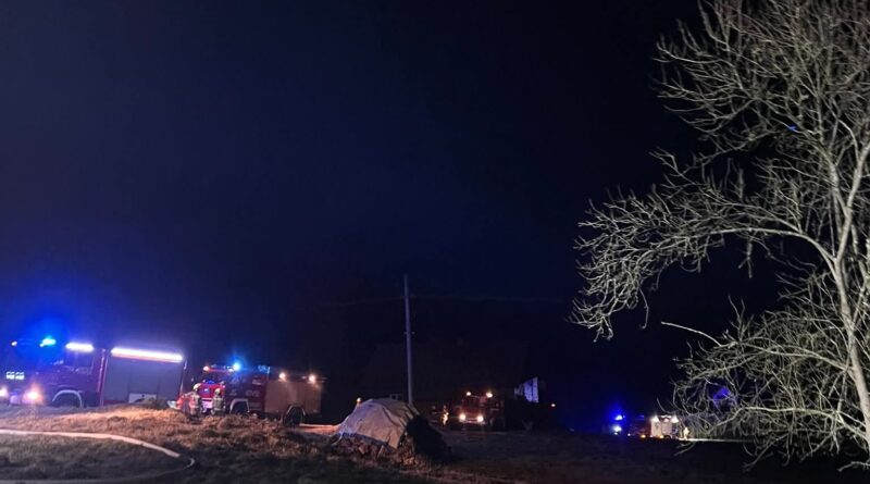 Zgłoszenie o pożarze do jednostki OSP Ryta Górka wpłynęło 9 marca 2026 roku o godzinie 01.17. Do działań natychmiast zadysponowano dwa zastępy straży pożarnej. Po przybyciu na miejsce strażacy zastali w pełni rozwinięty pożar stodoły.