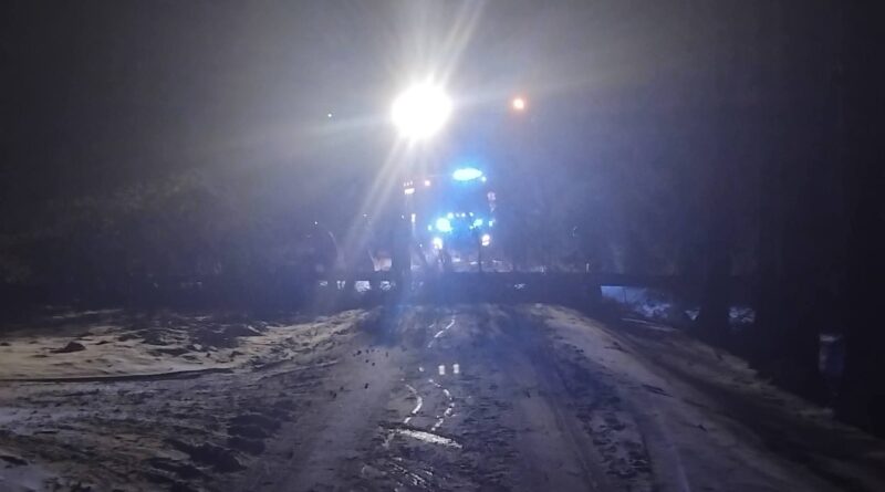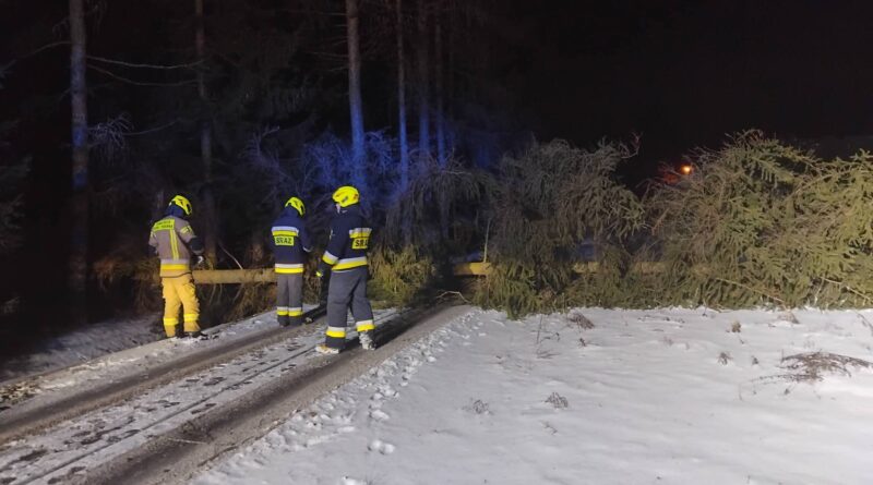 Na miejscu zdarzenia strażacy zastali powalone drzewo, które całkowicie blokowało przejazd drogą gminną. Do działań wyjechał zastęp GBA Volvo FL 320 w pełnej obsadzie. Dzięki sprawnej akcji zagrożenie zostało szybko usunięte, a droga ponownie stała się przejezdna. Była to pierwsza interwencja jednostki w 2026 roku.