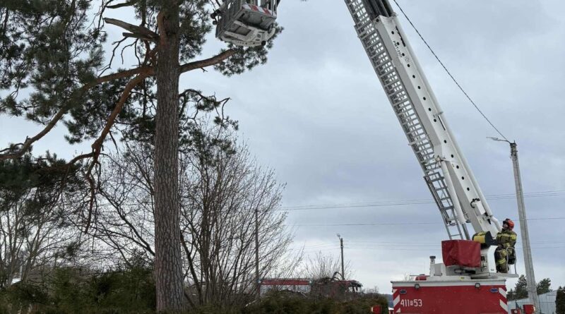 Uszkodzona gałąź stwarzała poważne zagrożenie nad jezdnią oraz w pobliżu przewodów linii napowietrznej. Ze względu na utrudniony dostęp i brak możliwości bezpiecznego działania z użyciem zwykłej drabiny, konieczne było wykorzystanie drabiny mechanicznej.