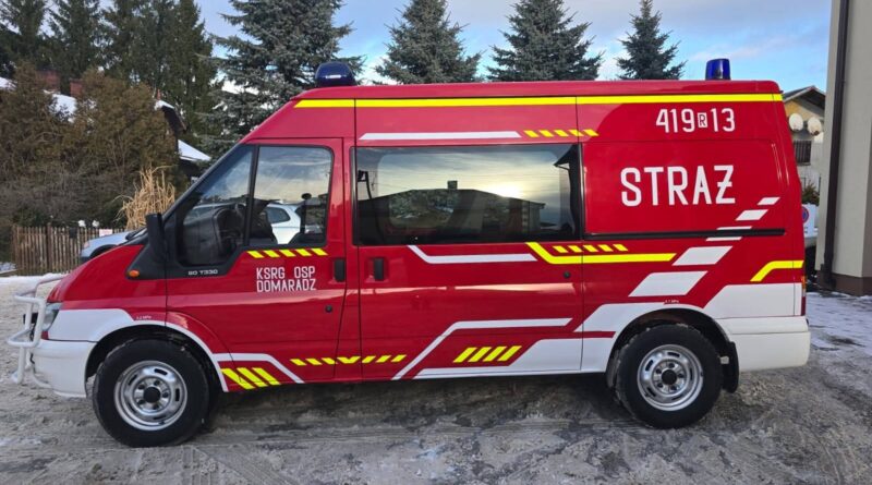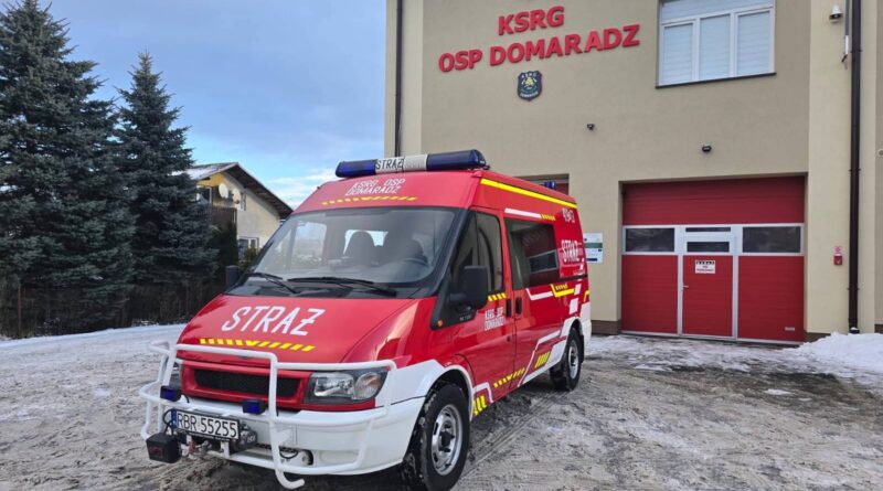 Jednostka Ochotniczej Straży Pożarnej w Domaradzu wzbogaciła się o nowy pojazd ratowniczo-gaśniczy. Do strażaków trafił samochód Ford Transit, zakupiony od OSP Jasienica Rosielna.