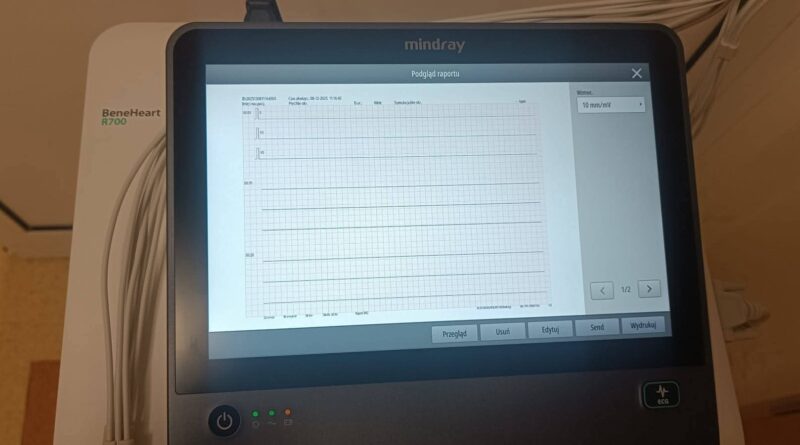 - aparat EKG, pozwalający na szybkie i precyzyjne badania pracy serca.