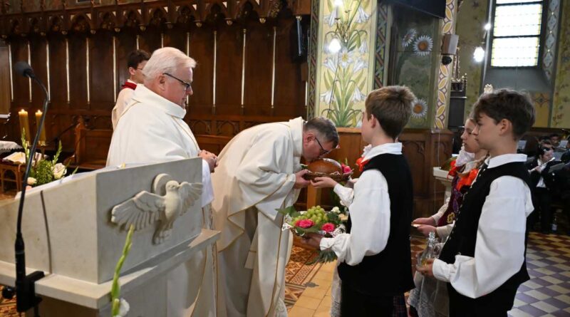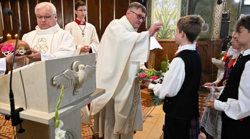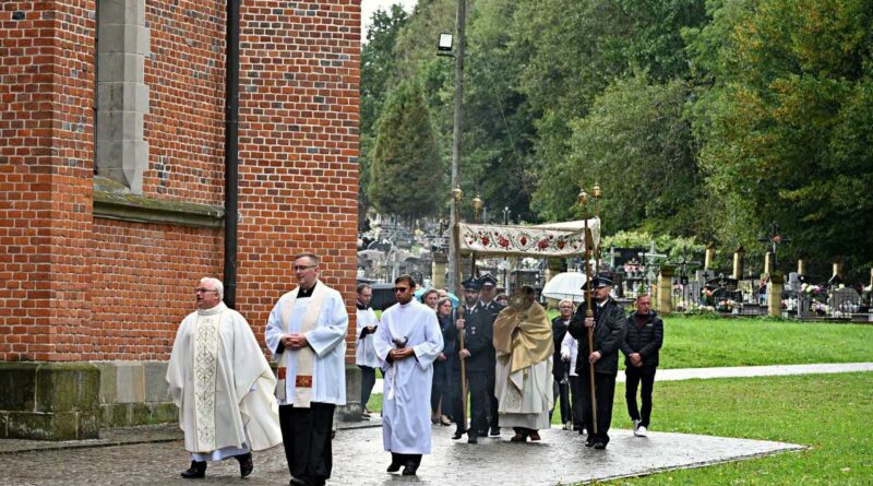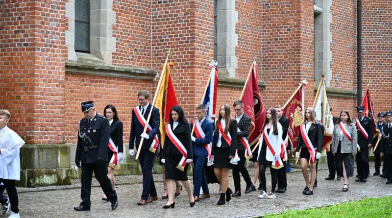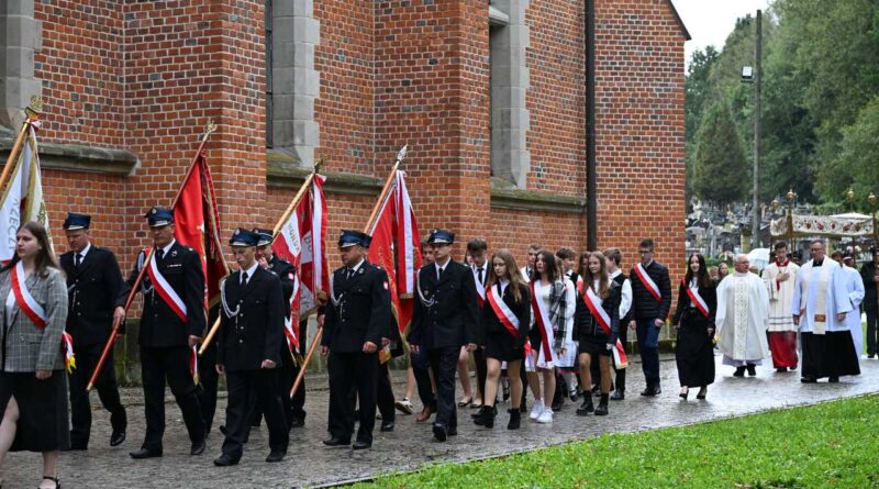 Po zakończeniu eucharystii odbyła się uroczysta procesja ze sztandarami. Wzięły w niej udział poczty sztandarowe: gminy, ochotniczych straży pożarnych oraz szkół, przedstawiciele instytucji, organizacji społecznych i oświatowych, a także mieszkańcy, którzy zgromadzili się, by dać wyraz przywiązaniu do tradycji i wspólnotowych wartości.