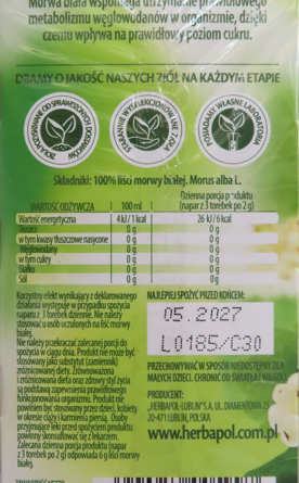 Produkt: Morwa biała. Suplement diety. Herbata ziołowa, Zielnik Polski, 40 g (20 torebek)