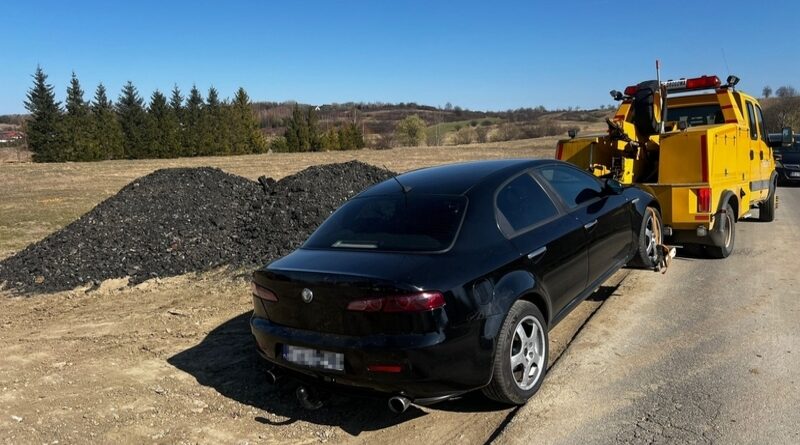 Mundurowi zatrzymali 24-latkowi prawo jazdy. Wykonali także oględziny Alfy Romeo, a następnie zabezpieczyli ją na policyjnym parkingu.