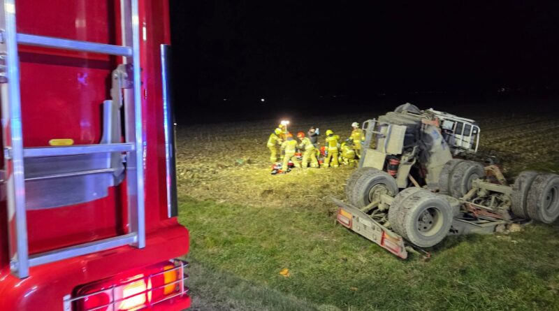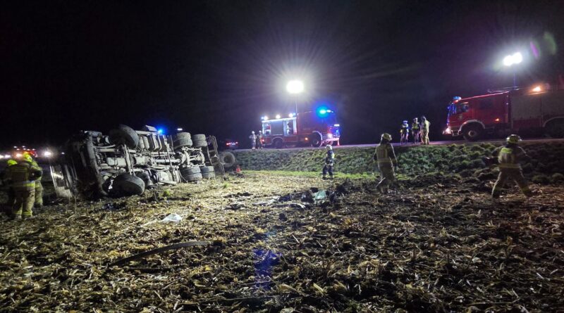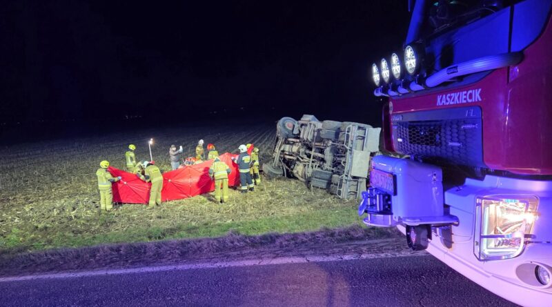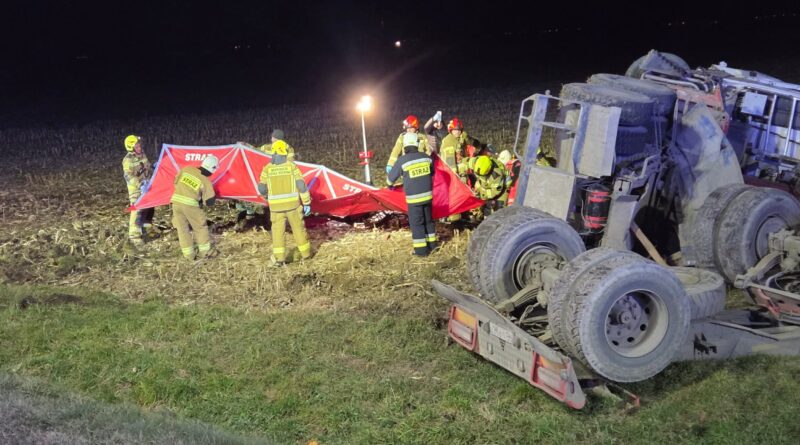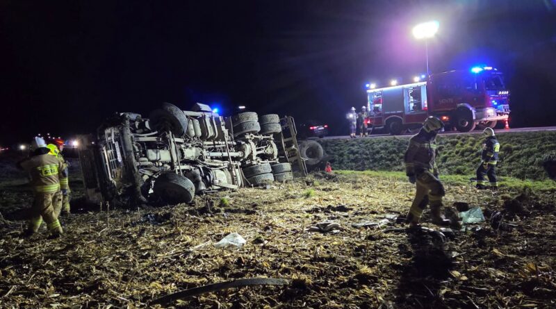Wyjaśniane są okoliczności zdarzenia, do którego doszło wczoraj w Zarszynie. Kierujący samochodem ciężarowym utracił panowanie nad pojazdem i zjechał z drogi przewracając go na bok. 42-letni kierowca został przewieziony do szpitala. Niestety jego życia nie udało się uratować.