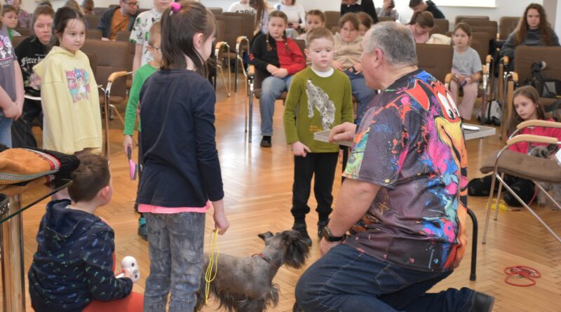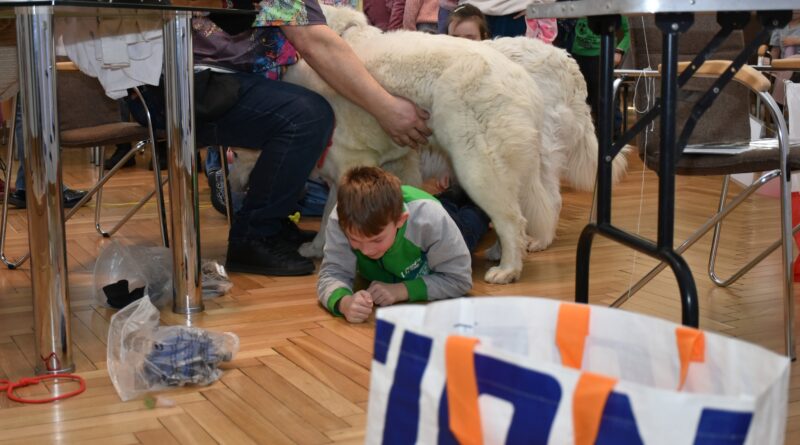Podczas spotkania Pan Zbigniew opowiadał o swojej wieloletniej pracy z psami terapeutycznymi. Opowiadał o odpowiednim przygotowaniu zwierząt do pracy z dziećmi, osobami starszymi czy z niepełnosprawnościami.