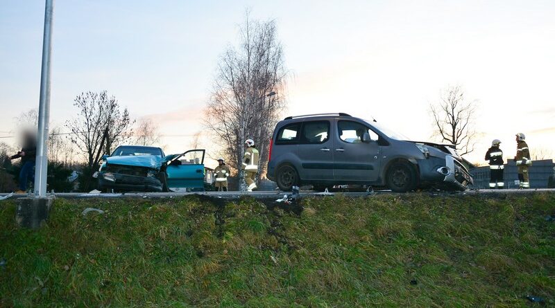 Poważny wypadek w Jaszczwi. Dwie osoby ranne po czołowym zderzeniu na DK28