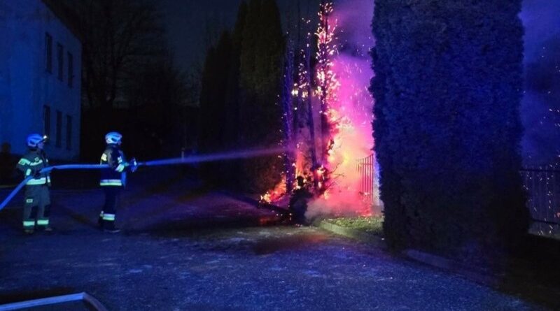 Pożar tui przy szkole – szybka interwencja strażaków z Jasienicy Rosielnej