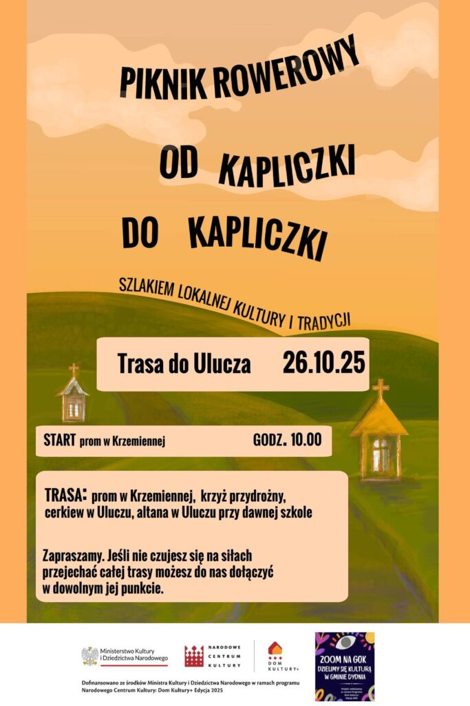 Już w niedzielę, 26 października 2025 roku, miłośnicy dwóch kółek, lokalnej kultury i tradycji spotkają się na wyjątkowym wydarzeniu – pikniku rowerowym „Od kapliczki do kapliczki”, który poprowadzi malowniczym szlakiem lokalnej kultury i tradycji.