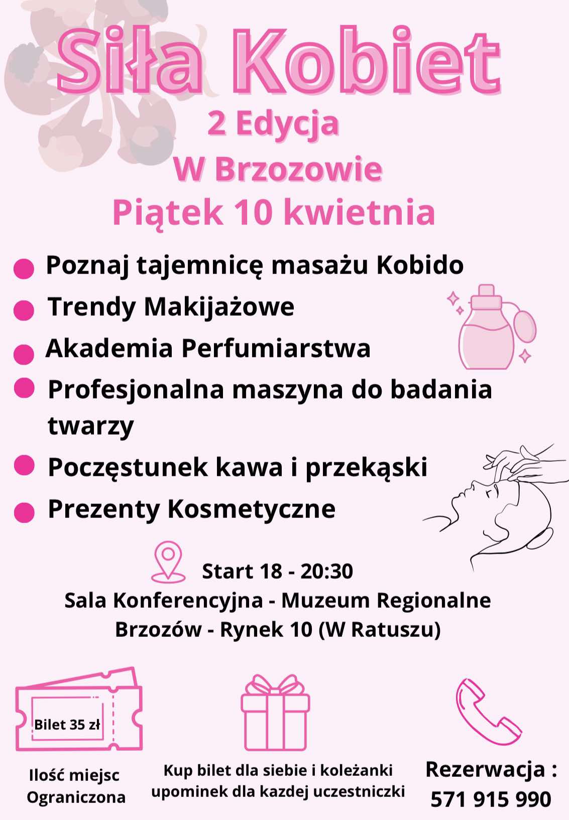 10 kwietnia Brzozów ponownie stanie się przestrzenią kobiecej inspiracji. W Sali Konferencyjnej Muzeum Regionalnego (Rynek 10, Ratusz) zaplanowano drugą edycję wydarzenia „Siła Kobiet” – spotkania, które łączy rozwój, relaks i dobrą energię. Już teraz organizatorzy zapraszają wszystkie panie do udziału w tym wyjątkowym wydarzeniu.