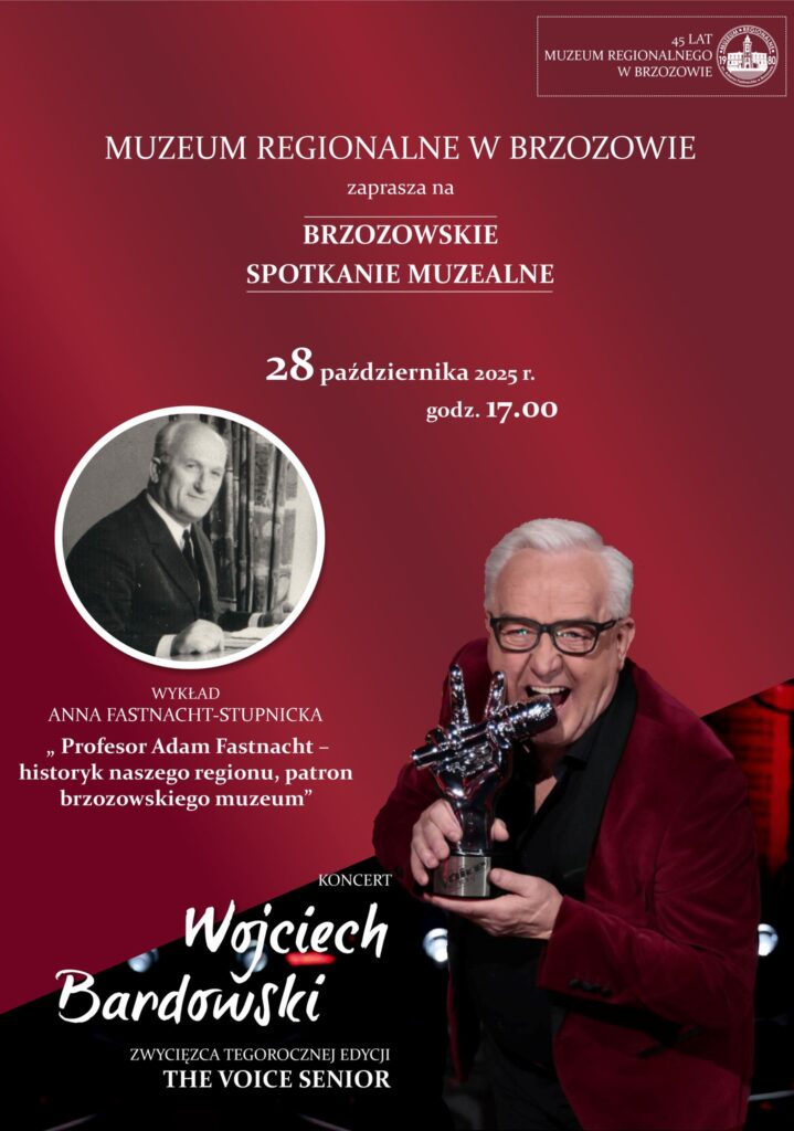 Dyrekcja i Pracownicy Muzeum Regionalnego w Brzozowie zapraszają na kolejne brzozowskie spotkanie muzealne. Spotkanie 28.10. (wtorek) rozpocznie się o godz. 17, a jego program zapowiada się intrygująco. Najpierw Anna Fastnacht-Stupnicka przybliży sylwetkę swojego ojca we wspomnieniu “Profesor Adam Fastnacht, historyk naszego regionu, patron brzozowskiego muzeum”. Następnie ucztę muzyczną zapewni koncert Wojciecha Bardowskiego, zwycięzcy tegorocznej edycji talent-show “The Voice of Senior”. Wstęp wolny.