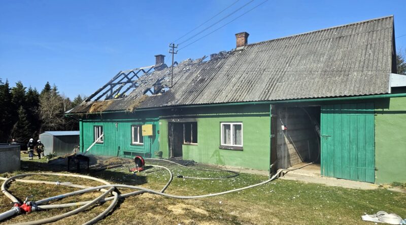 Informację o pożarze domu jednorodzinnego strażacy otrzymali około godziny 9.30. Na miejsce natychmiast skierowano znaczne siły ratownicze – łącznie 10 zastępów straży pożarnej z powiatu brzozowskiego.