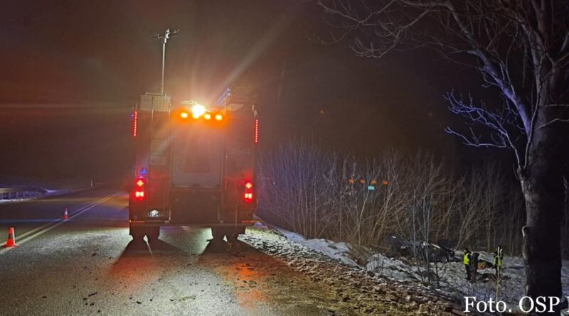 Wczesnym popołudniem, w czwartek 1 stycznia 2026 roku, o godzinie 15.56 służby ratunkowe otrzymały zgłoszenie o poważnym wypadku drogowym, do którego doszło na drodze wojewódzkiej nr 864 w miejscowości Równe. Na miejsce natychmiast skierowano jednostki straży pożarnej, zespół ratownictwa medycznego oraz policję.