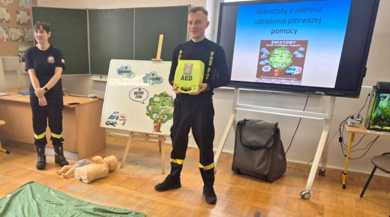 - korzystanie z defibrylatora AED, który znajduje się na wyposażeniu jednostki OSP,