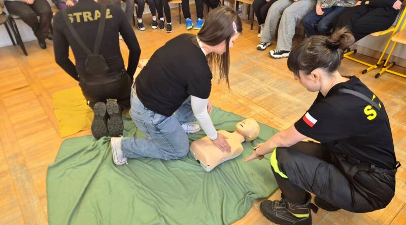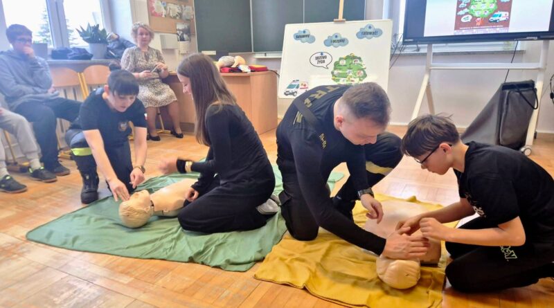 Uczniowie aktywnie uczestniczyli w ćwiczeniach i zadawali wiele pytań, wykazując duże zainteresowanie praktycznymi aspektami pierwszej pomocy.