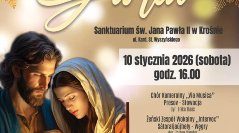 Regionalne Centrum Kultur Pogranicza i Sanktuarium Świętego Jana Pawła II zapraszają na XXV Euroregionalny Koncert Kolęd „Soli Deo Gloria” – spotkanie z muzyką, które od lat towarzyszy styczniowej atmosferze wspólnego kolędowania w Krośnie. Koncert odbędzie się 10 stycznia 2026 roku o godz. 16.00 w Sanktuarium św. Jana Pawła II w Krośnie. Podczas wydarzenia wystąpią chóry z Polski, Słowacji i Węgier, prezentujące bogactwo środkowoeuropejskiej tradycji bożonarodzeniowej. Artyści zapraszają do wspólnego wykonywania kolęd i pastorałek, które tworzą przestrzeń do spokojnej refleksji i międzypokoleniowego spotkania. Wstęp na wydarzenie jest wolny.