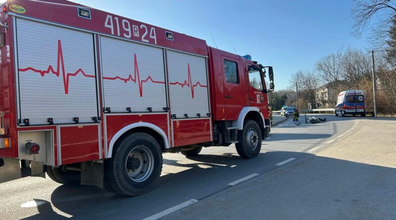 Zderzenie motocykla z samochodem w Wydrnej. Na miejscu pracują służby